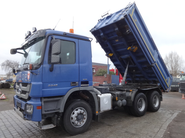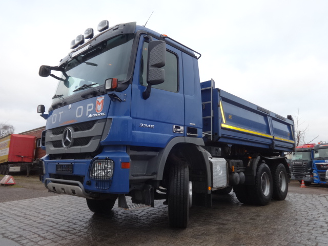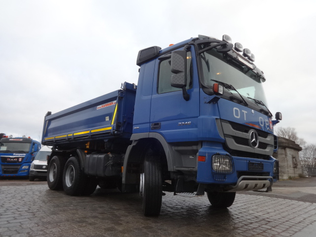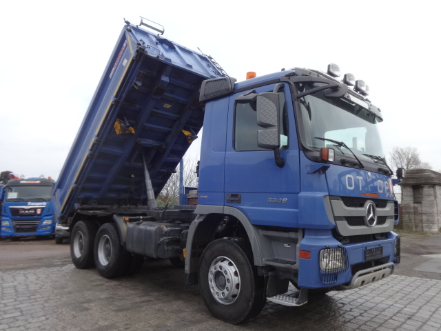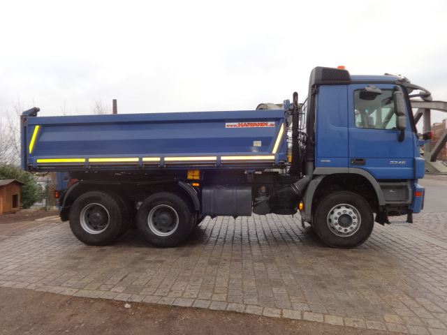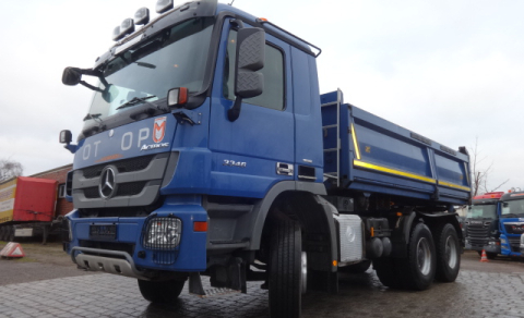 Das Fahrzeug ist in einem guten allgemeinen Zustand mit normalen Gebrauchs- und Abnutzungsspuren. Radstand 3300mm. Mercedes Benz Getriebe/12 Gänge. Meiller-Dreis-Seiten-Kipper mit Bordmatic. Bereifung vorne 385/65R22,5, hinten 315/80R22,5.
