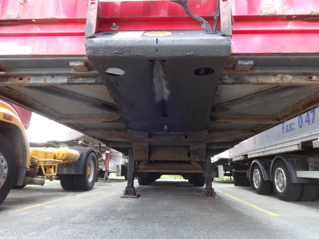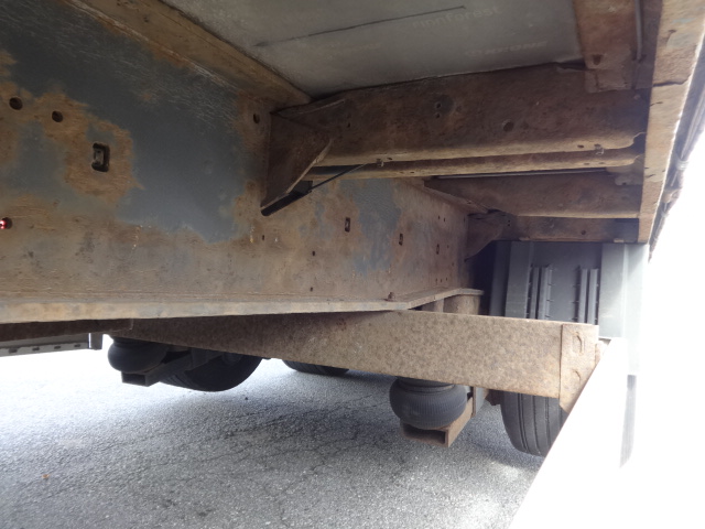 Der Auflieger ist dem Alter entsprechend ok mit diversen Gebrauchs-Abnutzung- und Verschleißspuren. MB-Achsen. Liftachse, Luftfederung, Scheibenbremsen, Edscher, 2 Staukästen, Reserverad. Bereifung 435/20R19,5 mit einem Profil von 30 - 70%.
