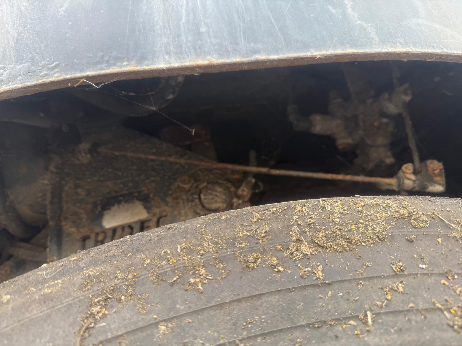 Der Auflieger ist dem Alter entsprechend OK. Spezialaufbau. Laderampe hinten. BPW-Achsen. Trommelbremsen. Bereifung 385/65R22,5 mit einem Profil zwischen 40 und 70%.